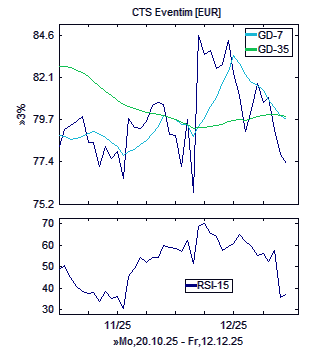 CTS Eventim notierte in der abgelaufenen Woche (08.12. - 12.12.) zu Preisen zwischen 77,35 und 81,00 EUR.